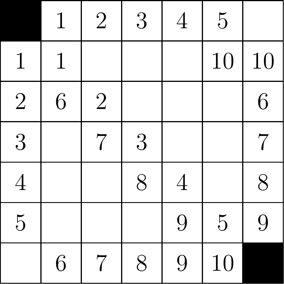 pre každé $i \in {2,3,\dots,n-1}$ štvoricu $(1,1)$, $(i,1)$, $(i,i)$, $(1,i)$ ($n-2$ štvoríc);