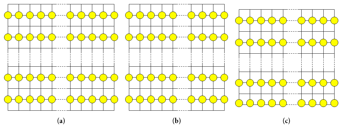 Ak sú $m$, $n$ párne, pričom $m \le n$, tak nám stačí $m(n + 1)/2$ lámp. Lamy umiestnime ako na obrázku a.